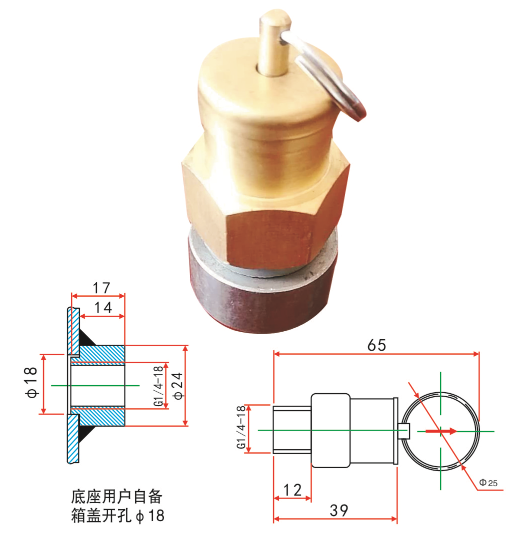 1、釋放壓力范圍: P=0.03MPa或P=O.06MPa (可根據(jù)用戶要求定制)2、安裝螺紋:G1/4-18(可根據(jù)用戶要求定制)