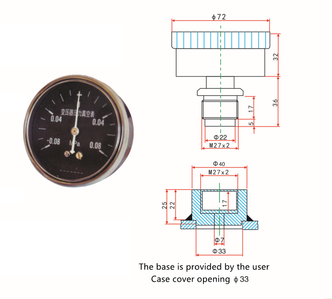 4、壓力真空表安裝接頭:M27x2。