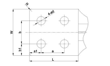 四孔板型接線端子的一般板面尺寸如圖