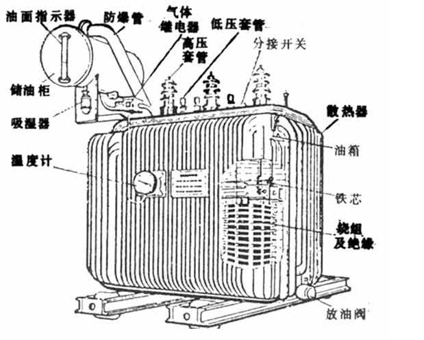 油箱和儲油柜:是油浸式變壓器的代表部分,其用途主要是絕緣、降溫。油箱是油浸式變壓器的外殼,變壓器的鐵芯和繞組置于油箱內(nèi),箱內(nèi)注滿變壓器油。儲油柜也稱作油枕,當(dāng)變壓器油的體積隨油溫的升降而膨脹或縮小時,油枕就起著儲油和補油的作用,以保證油箱內(nèi)始終充滿油。