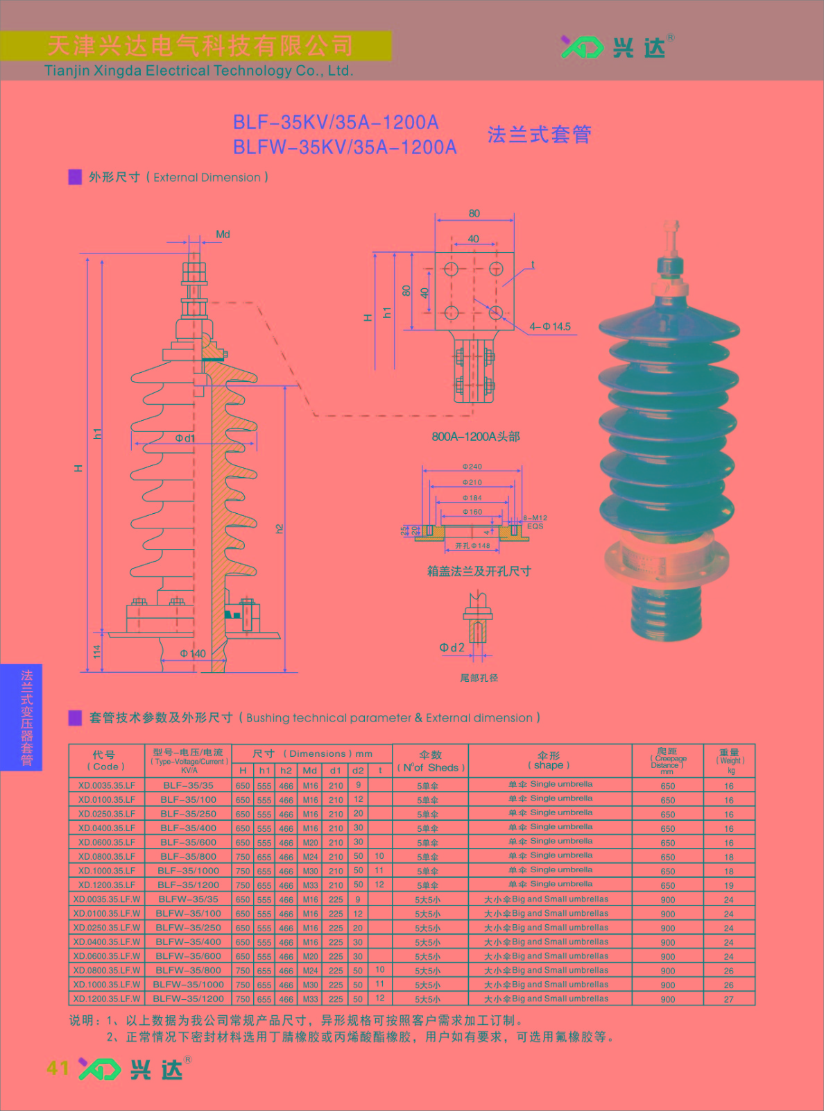 2. 具有高抗震和耐破性、機械強度好,套管鋁合金法蘭采用航空技術(shù)生產(chǎn),瓷套與法蘭采用特殊工藝經(jīng)卡裝后粘結(jié)在一起,機械強度高、耐腐蝕、外型美觀,適合特殊環(huán)境。
