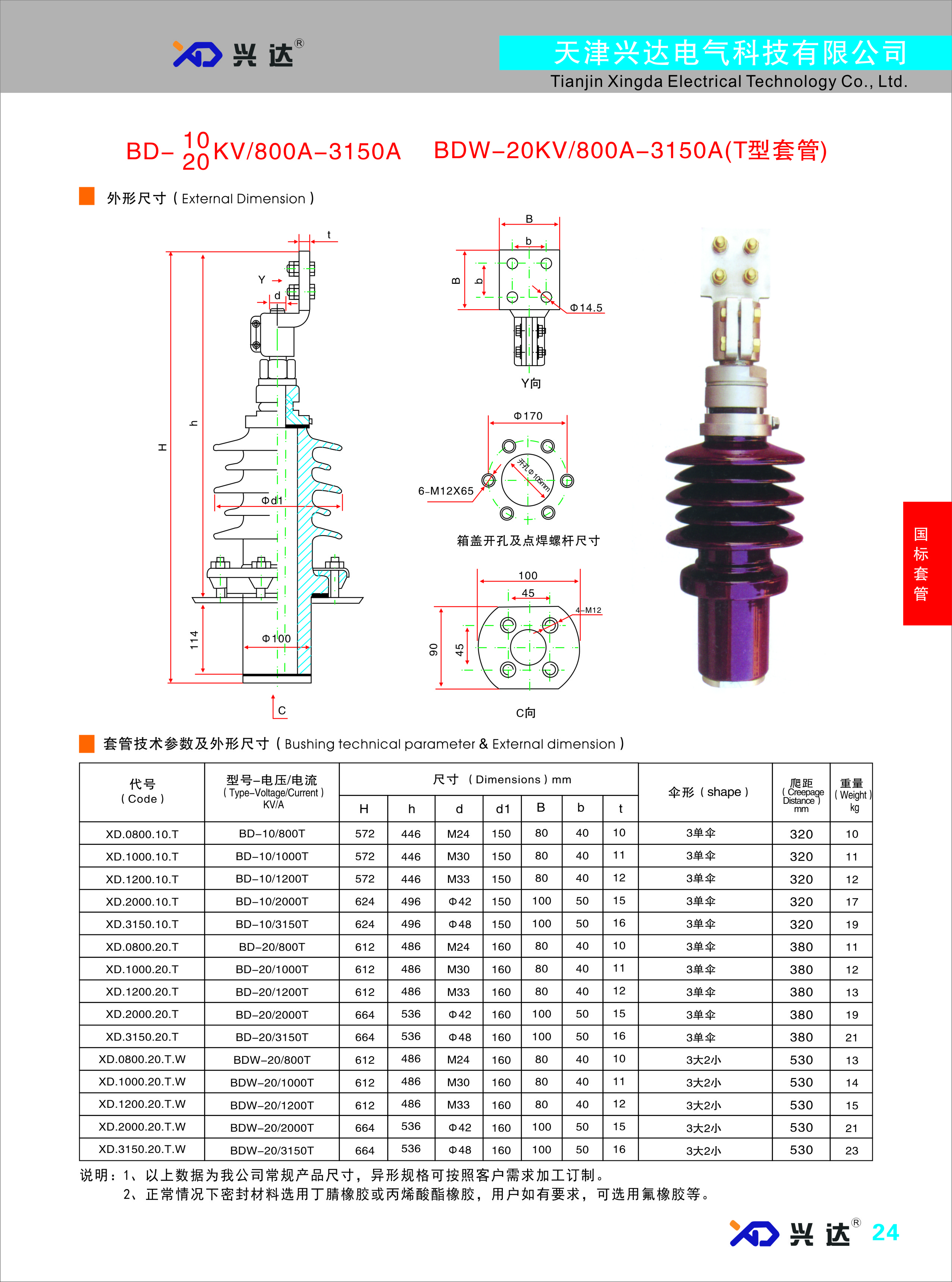 BD- 10 ~20KV/800A-3150A BDW- 20KV/800A-3150AT型套管