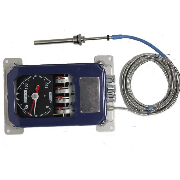 油浸式變壓器溫度控制器是用于測量電力變壓器內(nèi)變壓器油溫的測量儀表,儀表采用復合傳感器技術(shù),即儀表溫包推動彈性元件的同時,能同步輸出Pt100熱電阻信號,此信號可遠傳到數(shù)百米以外的控制室,通過XMT系列數(shù)顯溫控儀同步顯示并控制變壓器油溫。也可通過XMT系列數(shù)顯儀表,將Pt100熱電阻信號轉(zhuǎn)換成與計算機聯(lián)網(wǎng)的直流標準信號(0~5V、1~5V、4~20mA)輸出。儀表采用外置接線盒方便用戶接線。