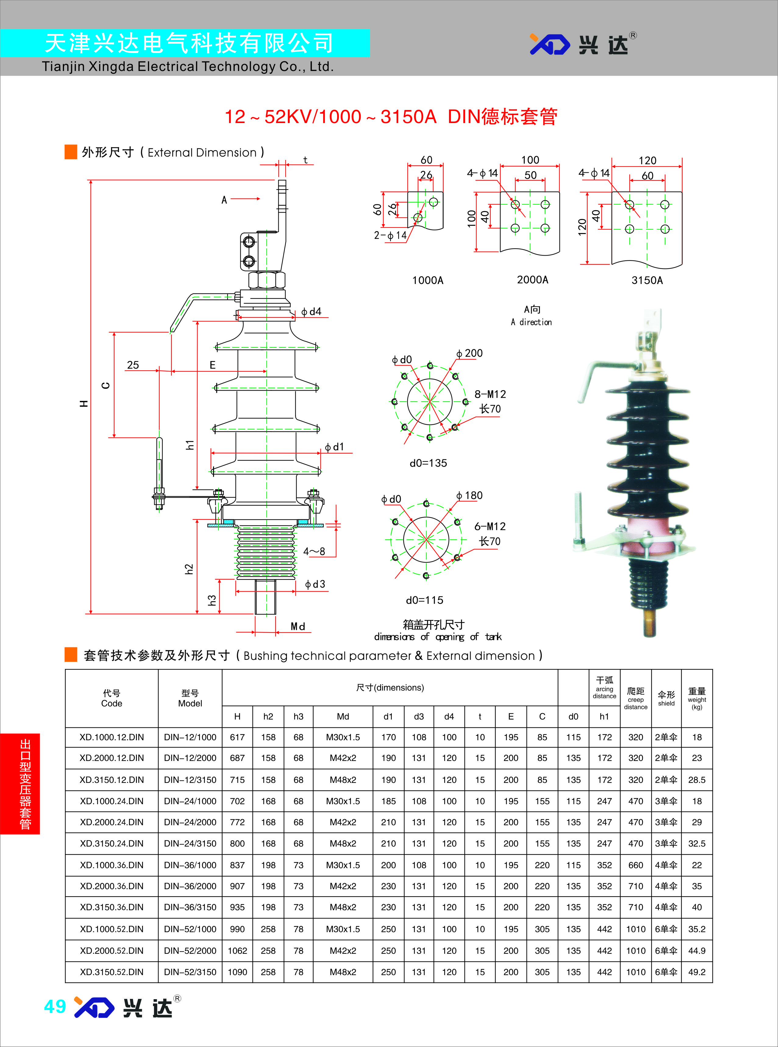 12~52KV/1000~3150 DIN 德標(biāo)套管